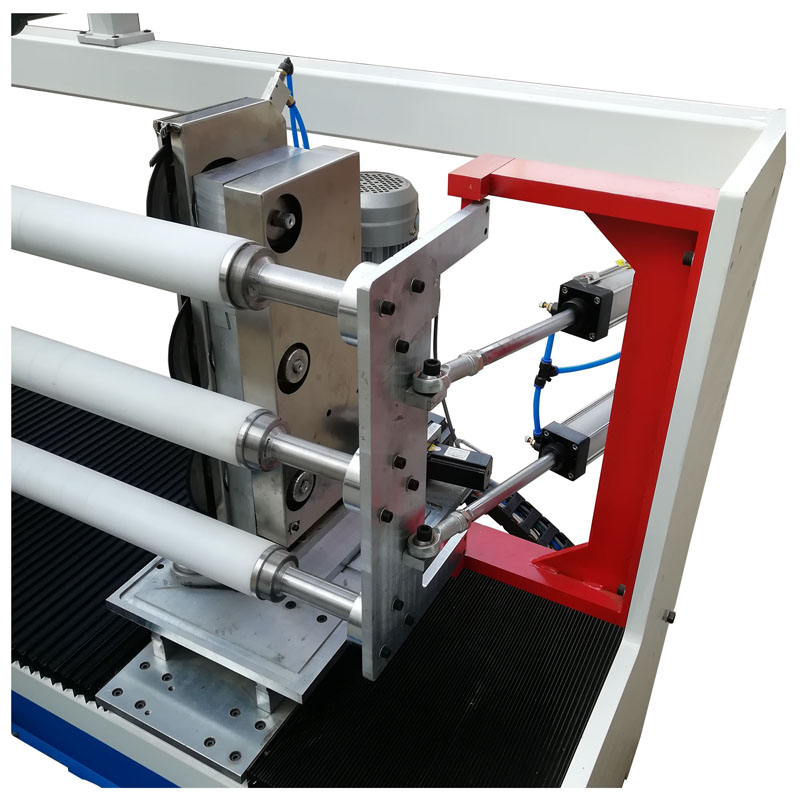 2. 電機(jī)控制系統(tǒng)為PLC可程式控制器,同軸中可設(shè)定多種尺寸,電腦于切割時(shí)自動(dòng)調(diào)整切割寬度